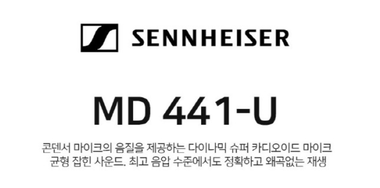 젠하이저 MD441-U는 다이나믹 마이크이지만 콘덴서 마이크처럼 고급스러운 음질을 제공하는 모델입니다.